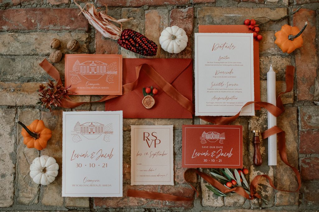 Im Oktober hatten wir die Möglichkeit ein wunderschönes Herbstliches Inspiration Shooting in der Orangerie des Schloss Rheda umzusetzen.